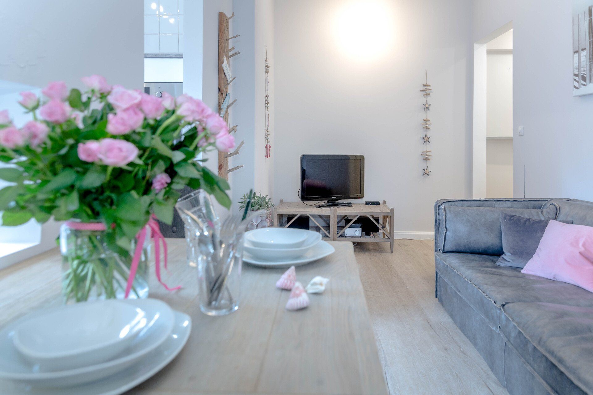 Diese 70 m² große Traumwohnung im amerikanischen Beachhouse-Stil erstreckt sich über den kompletten 1. Stock unseres Hauses.