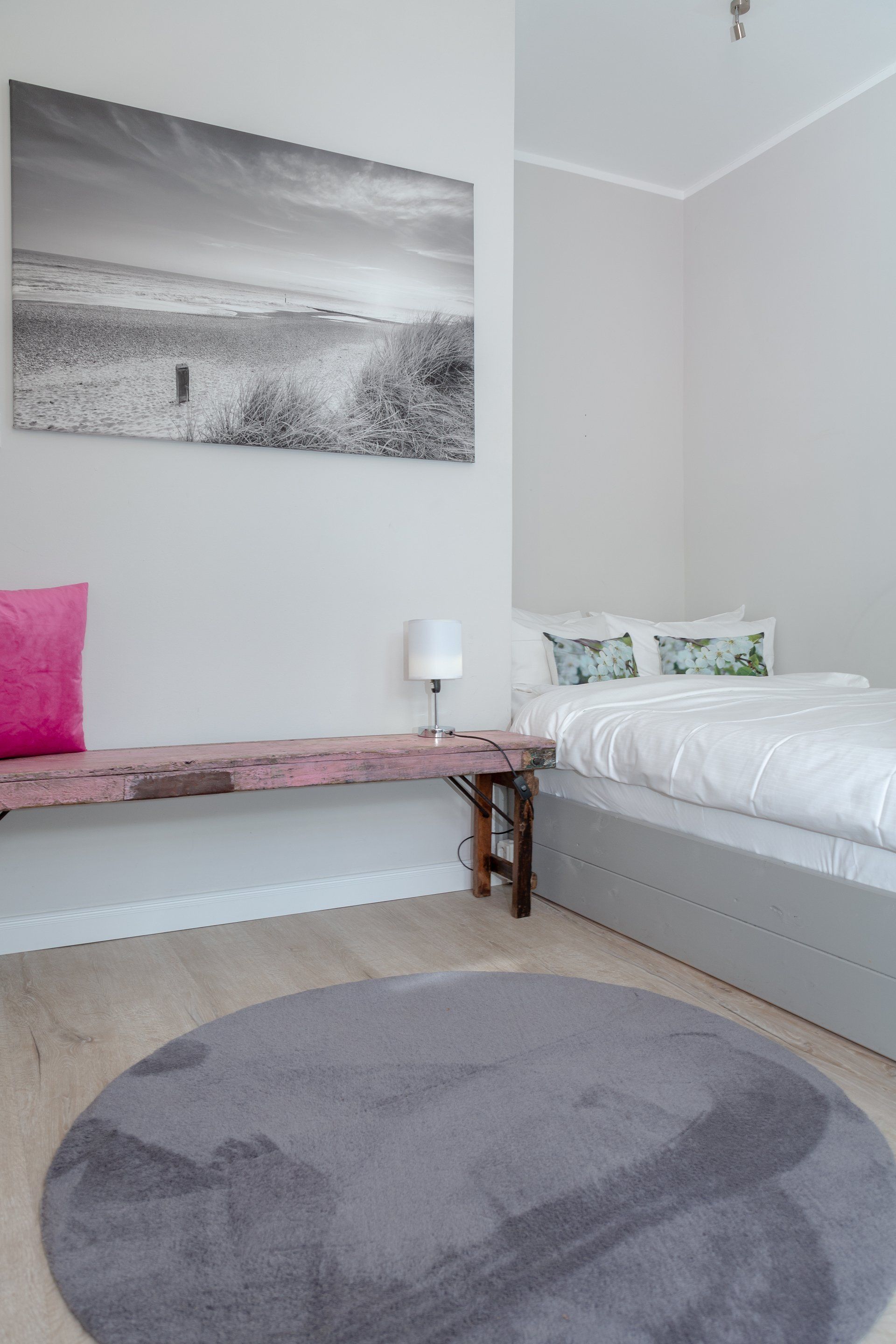 Der helle Wohn- / Schlafraum verfügt über ein komfortables Doppelbett mit den Maßen 180 x 200 cm (2 Einzelmatratzen).